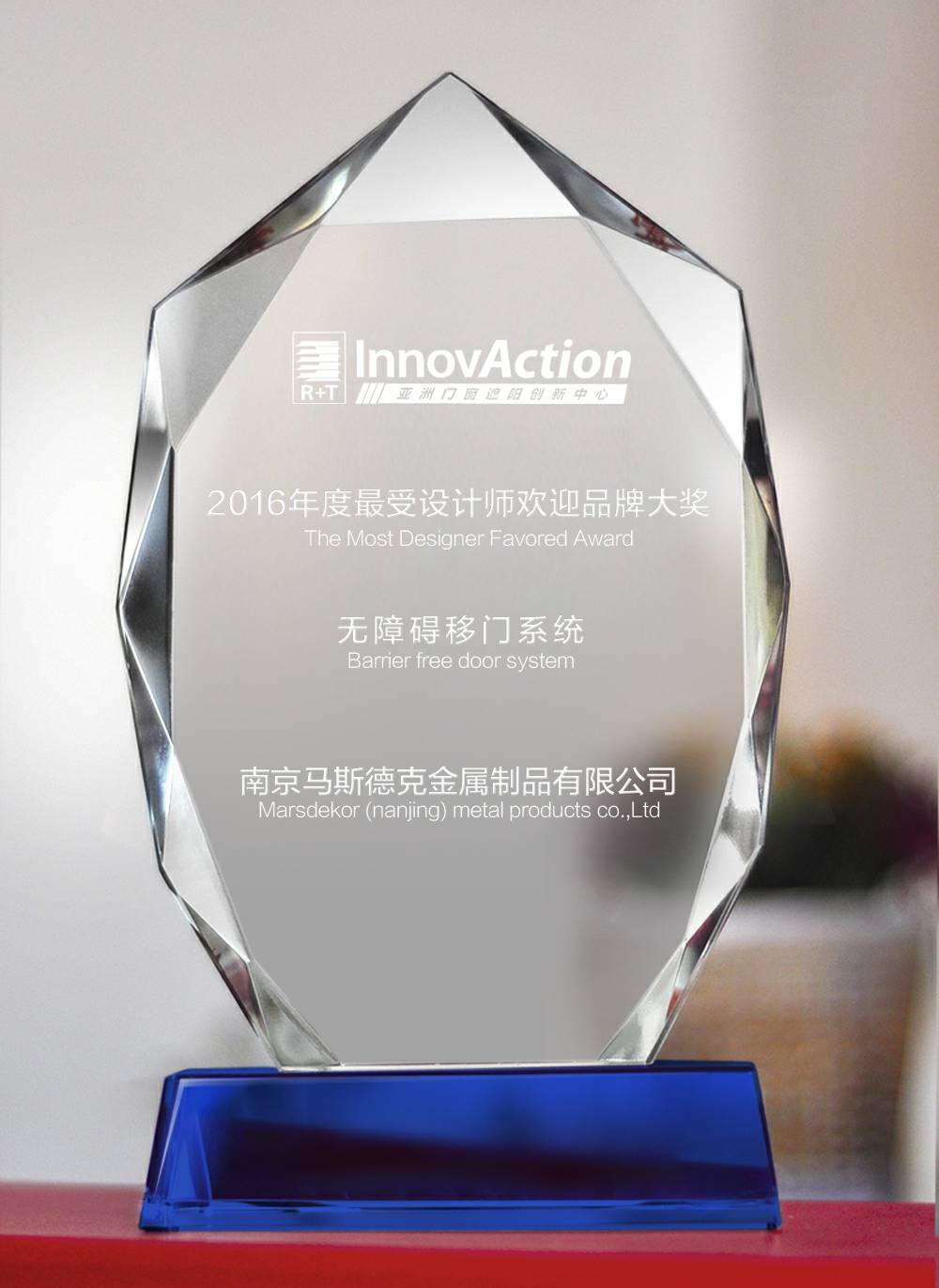 兰州天佑智能制造技术有限公司荣获2016R+T ASIA最受设计师欢迎品牌大奖。